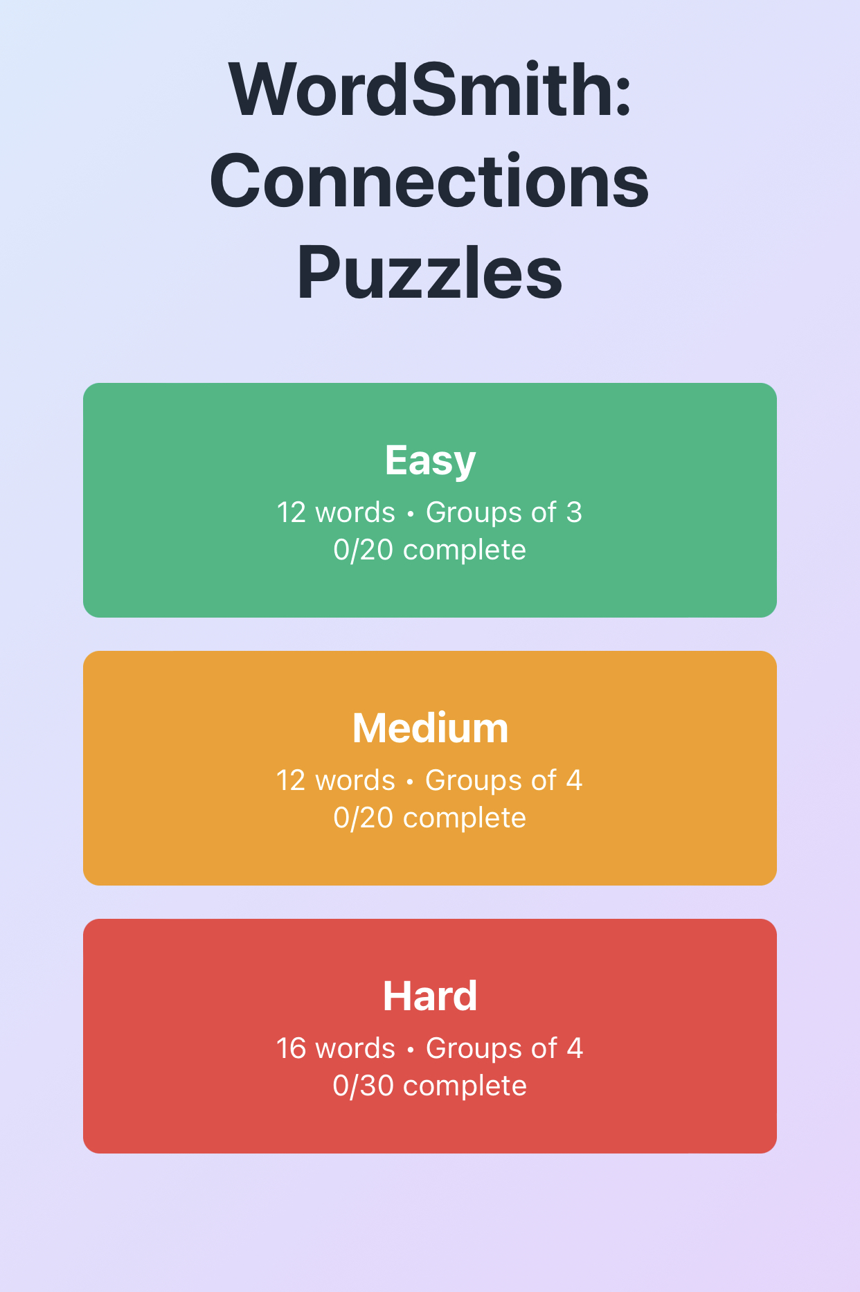 Heavily inspired by a very similar game put out by the New York Times, but I was tired of the iOS apps having ads after every level, and wanted to craft my own puzzles anyways. Enjoy! And feel free to leave a comment if you loved it, hated it, or experience any bugs